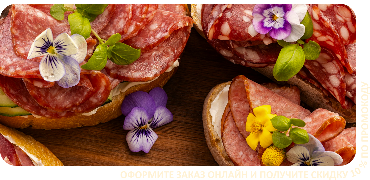 В нашем ассортименте Вы найдёте продукты для решения любых задач – от подготовки банкетов и праздников, до организации корпоративного питания и ресторанного меню. Для Вас: охлаждённое мясо, нарезки, колбасы, ветчины, рулеты, балыки, гриль-меню и блюда «Ready-to-Cook» ресторанного уровня, которые достаточно просто разогреть!